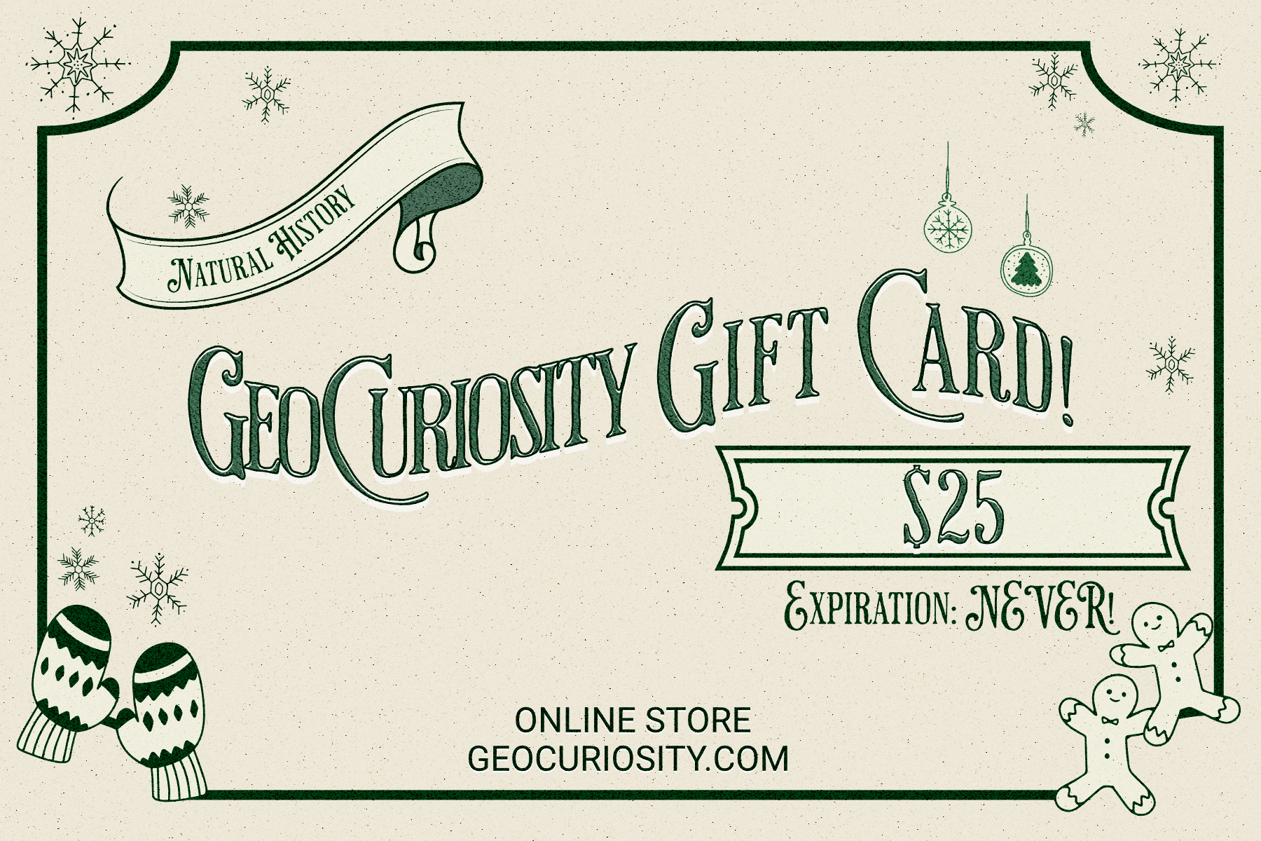 Every purchase made with a GeoCuriosity gift card still supports our mission to inspire curiosity about Earth’s history — and every order redeemed plants a tree and is made with eco-friendly material.